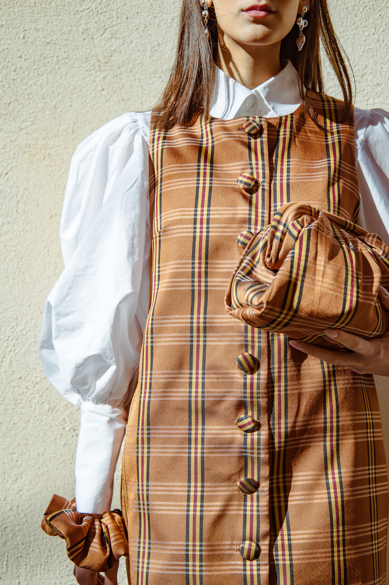 Abito smanicato con stampa burberry. Chiusura anteriore con bottoni tono su tono.